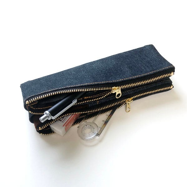 人気のデニム素材のダブルジッパーペンケースです。