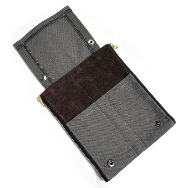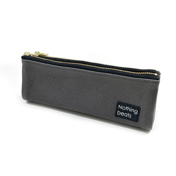 落ち着きのあるグレーが魅力の帆布素材のダブルジッパーペンケースです。