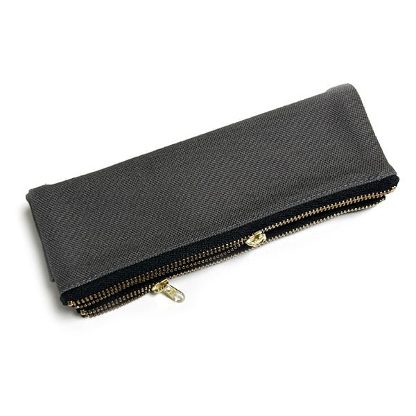 グレーに黒のファスナーを合わせた、シックなデザインのペンケース。