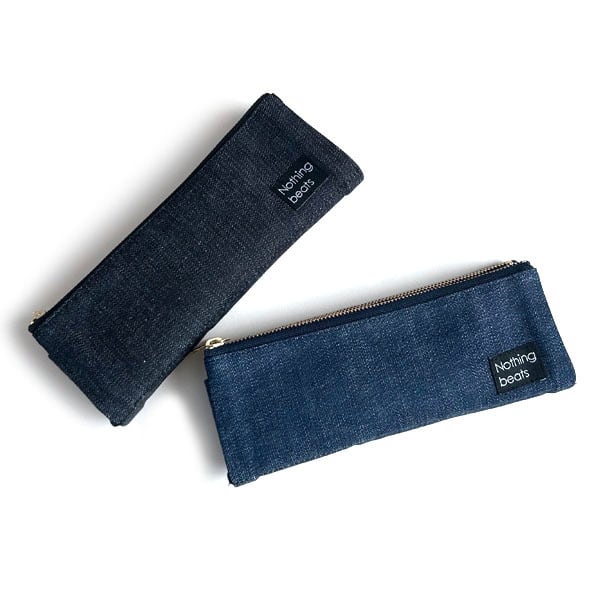 人気のデニム素材のダブルジッパーペンケースです。
